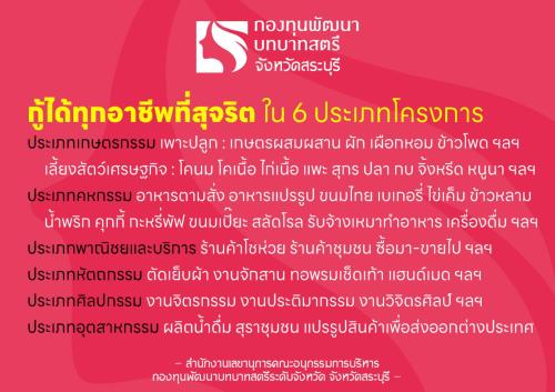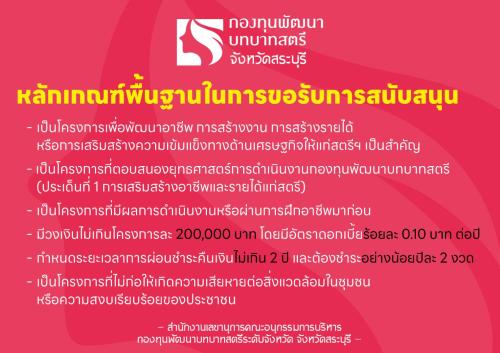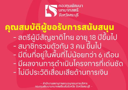 หมุนเวียน (เงินกู้) ดอกเบี้ยต่ำ จากกองทุนพัฒนาบทบาทสตรี เพื่อนำไปใช้เป็นทุนประกอบอาชีพ เสริมรายได้ และยกระดับคุณภาพชีวิตของสตรีในชุมชน สอบถามข้อมูลเพิ่มเติมได้ที่สำนักงานพัฒนาชุมชนอำเภอ